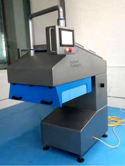 FD2000脉冲强光杀菌设备简介 脉冲强光杀菌是一种新型非热杀菌技术,采用瞬时释放出的脉冲光能作用于目标微生物,在光热和光化学效应的共同作用下,微生物自身被瞬间加热而出现细胞破裂,从而杀灭食品和包装上多种微生物,有效保持食品质量,延长货架期。 这种技术与传统的杀菌方法相比,具有处理时间短、操作控制方便、不与物料和器械直接接触、无化学污染等优点,可在短时间内大幅度降低微生物菌群数量,有效杀死食品表面的致病菌和Putrefactive bacteria菌,无化合物残留,对食品品质破坏小。 FD2000脉冲强光杀菌设备原理 光子通量是由灯产生的,它被要杀菌的基质吸收。当底物的厚度很小时,比如细菌的细胞壁,光子通量会导致细胞壁磨损甚至部分蒸发。此外,很强的电子电流会产生强大的电磁场.强大的电磁场和高光子通量的结合对细菌以及酵母、真菌和病毒具有破坏性的物理影响(Kleijn, 2018)。 FD2000每闪发出2x1021个光子。这些光子在被辐照的物质上被转换成热。当光子被吸收时,它会失去电能并转化为热能(Kleijn, 2018)。闪光持续时间非常重要。举例来说,如果闪光的频率是1000Wsec,那么闪光的持续时间为One in a million秒,峰值能量为1MW(兆瓦)。光子都是在几分之一秒内发出的。杀死细菌的是光子密度。