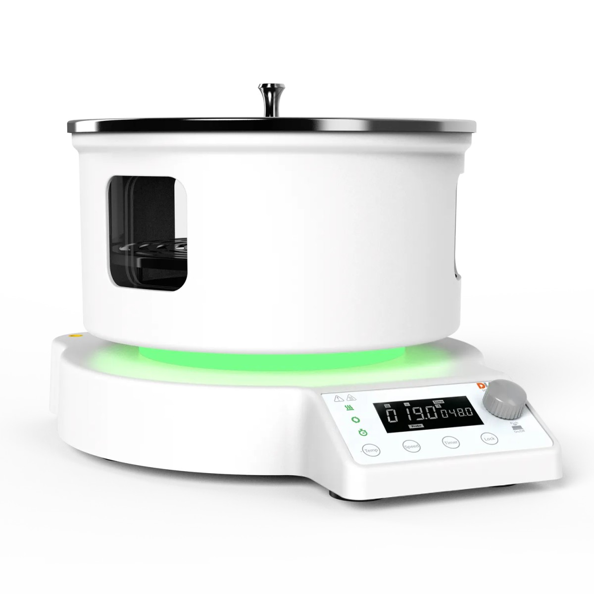 MS-H220-V3/MS-H220-V5 LCD 数控 集热式 恒温磁力搅拌浴 产品特点: 高硼硅玻璃内胆,冷热切换不易破裂,透明玻璃窗随时观察反应产物变化;不锈钢底座,不生锈,易清洁;耐高温保护外壳,防止直接接触高温玻璃而烫伤。 水浴和油浴双用搅拌浴,浴锅设有二级搅拌,浴液搅拌的同时会带动烧瓶中的液体样品同步搅拌,浴液和样品同步受热均匀。 安全锁,防止意外改变运行状态。 蜂鸣器:定时功能倒计时结束蜂鸣器会发出“滴滴滴”的提示声。 具有定时功能,定时范围 1min-99h59min,倒计时结束停止加热,不会停止搅拌,以免 热损伤样品。 工作状态指示灯,运行状态:绿色,升温至设定温度,绿灯闪烁;报警红色。 正反转功能。 保护功能:防干烧保护,过电流保护,接地故障保护,过温保护。 余热警告功能,当盘面温度高于 50℃,关闭加热,屏幕会有“HOT”闪烁提示,即使关闭电源,显示屏依然“HOT”闪烁,提醒高温。 两个独立安全回路设计,持续监控设备,当过热情况发生,传感器故障,机器报错并停止加热,当线路短路,机器自动切断电源,保障操作者安全。 直流无刷电机,无火花,寿命长;低噪音,免维护,运行平稳。 LCD 显示转速、时间和温度参数,直观清晰。