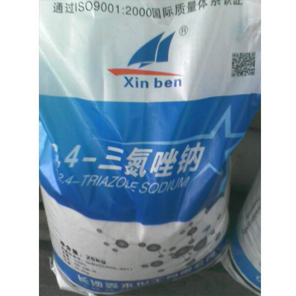 三氮唑钠盐理化性质:白色晶体,易溶于水,乙醇,在空气中很易潮解。外 观:白色颗粒或粉末分子式:C2H2N3Na 分子量:91 CAS 号:41253-21-8 性 质:白色颗粒。熔点295-310℃。溶于水和乙醇。产品参数含量:≥99. 0%游离碱:≤0.5%应用领域: 1.2.4-三氮唑钠盐用途: 可用作农药中间体的原料及有机合成原料