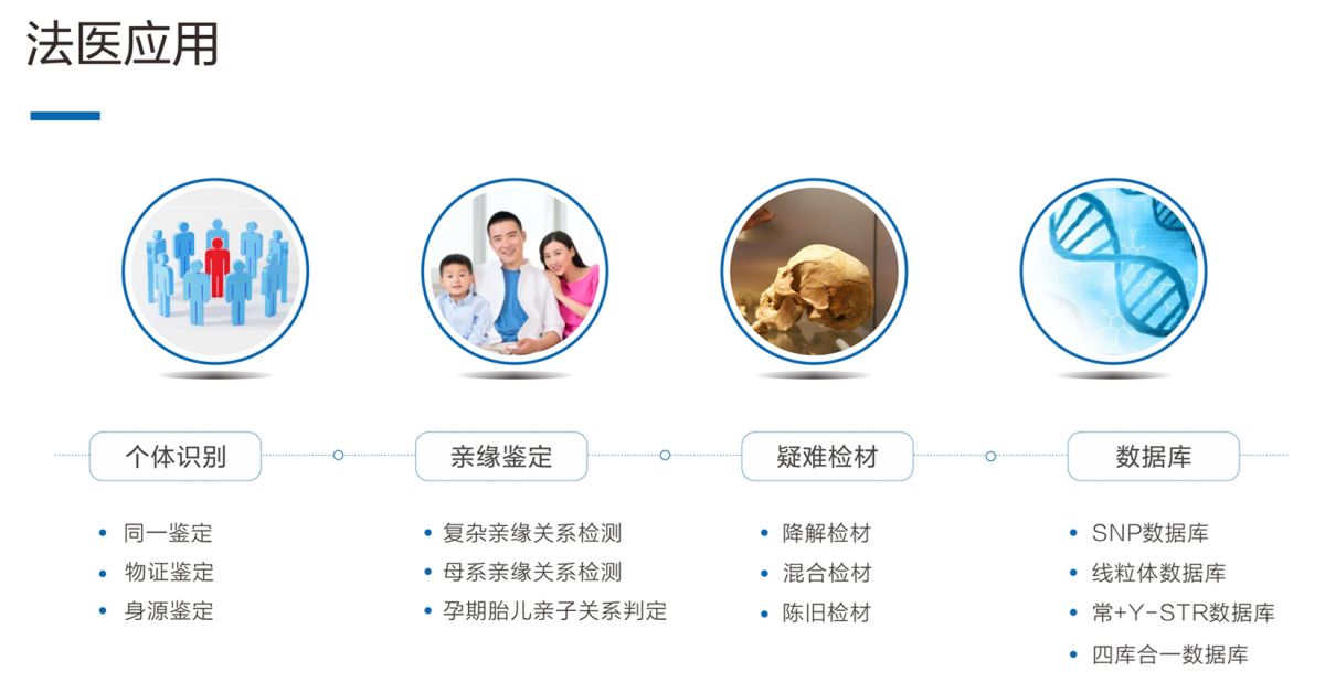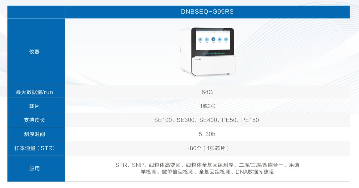 DNBSEQ-G99RS是专为法庭科学领域开发的全能型高通量测序检测系统,具有灵活的通量及测序类型,供各类法医应有研究选择,可满足多场景实际案件需要。基于自主知识产权、核心可按的DNBSEQ™纳米球测序技术,可以确保从各类检材中获取DNA序信息,通过一次检测即可获得STR、SNP、线粒体等多种遗传标记的序列信息,是法医物证检测的强有力工具。
