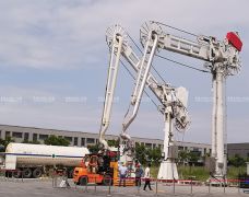 ◎结构特点 外伸臂接车口可根据用户选用快速接头或松套法兰。 本设备的气液相管道系统为硬管结构,通过旋转接头的联接,使管道系统在较大的包络范围内实现操作的随意性,从而简化操作程序并提高设备的适应范围。其特点如下: ―管道配置旋转接头以实现臂的三维运动; ―弹簧缸平衡系统平衡外臂及前端部件产生的弯矩; ―外伸臂接车口可按用户选用快速接头或松套法兰联接; ―旋转接头主密封圈为增强PTFE+不锈钢弹簧钢卡结构,有良好的自润滑性、耐磨性并能在磨损时实现自补偿。 ―采用弹簧平衡机构平衡外臂的重力矩,不平衡力矩小于5Kg.M,操作轻便省力。 ―配防静电装置,可有效地消除装卸作业中因液体流动产生的杂散电荷。 ―配有内臂锁紧机构,在臂不使用时将臂有效地复位。 ―安装、维护简单,维修方便。