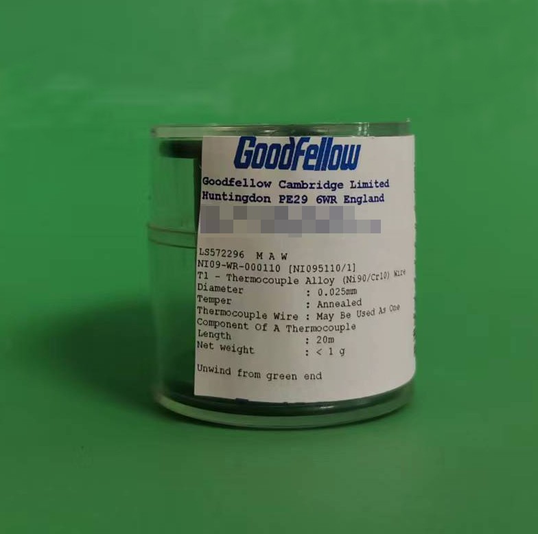 T1热电偶合金,线, Ni90Cr10, 0.025mm直径, Annealed Temper