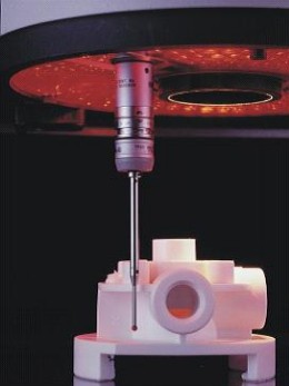探针选项 单点触发式探针使QVI SmartScope影像测量仪更加多元化。使用接触式探针可以测量到影像无法触及的特征或表面边界。 探针测量可以成为Measure-X 或MeasureMind3D影像测量仪测量程序中的一个步骤,QVI独有的探针到影像同轴校准确保了所有的传感器都在一个参考坐标系下,可以灵活使用任何传感器进行测量。 系列探针的测量精度可以通过参考球和软件的校准保证,探针、可拆卸Module,探针架和探针可以从QVI购买,或者由客户自行提供。触发式探针可以配置在SmartScope VantageTM,SmartScope FlashTM,SmartScope ZIPTM和SmarScope ATSTM系统中。所有的探针均可在软件控制下获取、存放、伸缩。根据QVI的影像测量仪所配置的探针的工作原理和工作方式可分为: 触发式探针 模拟扫描探针 全角度探针接头 羽毛探针 |