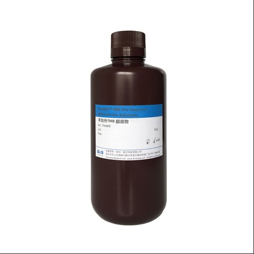 DurastabTM系列膜/沉淀性底物与其他同类产品相比,具有低本底、稳定、灵敏、批间变异小的特点,系列底物提供蓝色、紫色、绿色信号体系,供试剂盒研发和生产灵活选用。 TMB One Component Membrane Substrate为沉淀性底物,具有低本底、稳定、灵敏的特点,用于Westernblot、Microarray等应用。 目录号 Cat no: TMMS-0125/0250/0500/1000 包装规格 Package size: 125mL/0250mL/500mL/1000mL pH 值 pH value: 4.5±0.5 防腐剂 Biozide: 0.0002%(w/v)异噻唑啉酮 保质期 Shelf life: 3 years 储 存 Storage: 2-8℃ 应 用 Application: Westernblot、Northernblot、Microarray、ELISpot等用途。 用法说明 Instruction: DurastabTM TMB One Component Membrane Substrate 为即用型底物,平衡至反应温度后使用。 Westernblot显色步骤: 1. 洗涤,HRP酶标孵育后,用PBST/TBST washing buffer洗3次; 2. 显色,加入1mL 底物,在20-37℃孵育一定时间,检测条带显色为蓝色; 3. 终止:用1.5mL去离子水洗涤2-3次终止显色; 4. 读数:肉眼判读或仪器拍照分析灰度值; |