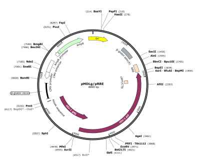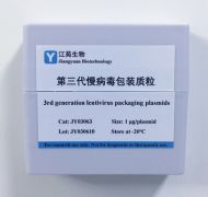 pMDLg/pRRE是第三代慢病毒包装辅助质粒,载有病毒gag和pol基因。与pRSV-Rev(JY03037)和pMD2.G(JY03027)构成第三代慢病毒包装系统,用于包装第三代慢病毒载体质粒,这4个质粒组成四质粒系统(即第三代慢病毒系统)。将这4个质粒共同转染293T等细胞以包装重组慢病毒,用此慢病毒感染目的细胞,即可实现基因敲除、敲降和过表达等。 使用说明 1.若购买1 μg包装的质粒,**使用时请先取少量本质粒转化大肠杆菌,进行质粒小量、中量或大量抽提后再用于后续用途。抽提获得的质粒可以通过酶切电泳进行鉴定,或通过测序进行鉴定。若想省去扩增和鉴定步骤,可直接购买100 μg包装的质粒。 2.pMDLg/pRRE与pRSV-Rev(JY03037)、pMD2.G(JY03027)和慢病毒载体质粒,构成四质粒系统(即第三代慢病毒系统),共同转染293T细胞等即可以包装慢病毒。
