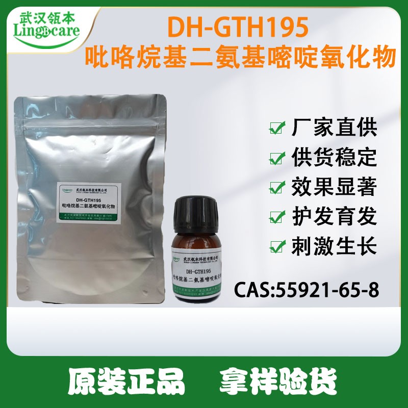 吡咯烷基二氨基嘧啶氧化物 中文名称:吡咯烷基二氨基嘧啶氧化物 中文同义词:吡咯烷基二氨基嘧啶氧化物;6-吡咯烷基-2,4-二氨基嘧啶 3-氧化物 含量:99% 外观:白色粉状 包装:1KG铝箔袋/25KG纸板桶 用途:主成分通过改善头皮血液循环,为发根提供所需的营养和氧,从而达到抑制脱发,坚固发根,促进头发生长的作用。通过开放钾离子通道,使毛囊由休止期向生长期转化,并能延长头发的生长期。 |