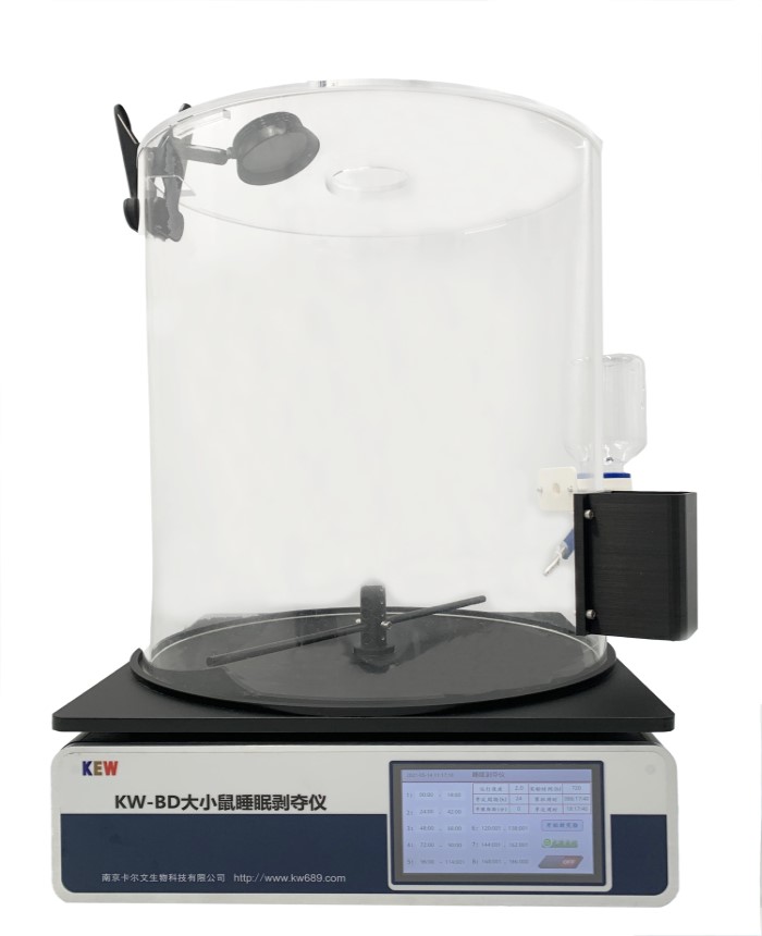 KW-BD型大小鼠睡眠剥夺仪 大小鼠睡眠剥夺仪(sleep deprivation),是我公司**推出的集视频跟踪于一体的仪器,可对动物睡眠活动行为检测,机器上方安装红外摄像机和光源,对于昼夜分析和光源开停不受任何影响,光源可结合机器逻辑开停,该设备是研究恢复脑力、体力所必须的行为学仪器,睡眠障碍会影响大脑思维,并导致疾病发生,从而使人体从健康状态转向亚健康,甚至是疾病状态,为了研究睡眠障碍及研制抗疲劳药物或保健品,需要前期动物模型实验,因此睡眠剥夺设备是必不可少的仪器。 睡眠剥夺仪是一款不需要对动物进行训练,以温和的方式对动物进行睡眠限制的仪器,仪器360度无死角进行抗睡眠。 参数设定完成后,不需要人为的干预即可对大鼠或小鼠进行睡眠剥夺的实验。 可由控制器触摸屏进行参数设置;干扰棒以1-20RPM的速度在鼠笼内转动,并且可以通过程序编制改变方向,以及转动频率以减少睡眠剥夺的动物对环境的适应; 系统可提供食物、水和睡眠场所,动物笼分大鼠笼和小鼠笼; 做工精致,结构新颖 。机器设计TTL输出和输入,方便脑电检测以及其他行为学配套驱动。 产品特点: 1、采用5寸液晶触摸屏人机对话 2、干扰方式:干扰棒以360度无死角旋转,避免动物夹伤。 3、采用圆形透明干扰箱,方便实验人员观察 4、带有饮食和饮水装置可长期实验 5、干扰箱分体结构可方便清理 6、干扰棒具有阻力击打功能 7、仪器可级联多台设备,用户只需控制一台设备,其他按此设备参数工作。 8、光源采用多级LED光源,可选择不同色温的灯光,灯光与机器逻辑配和工作。