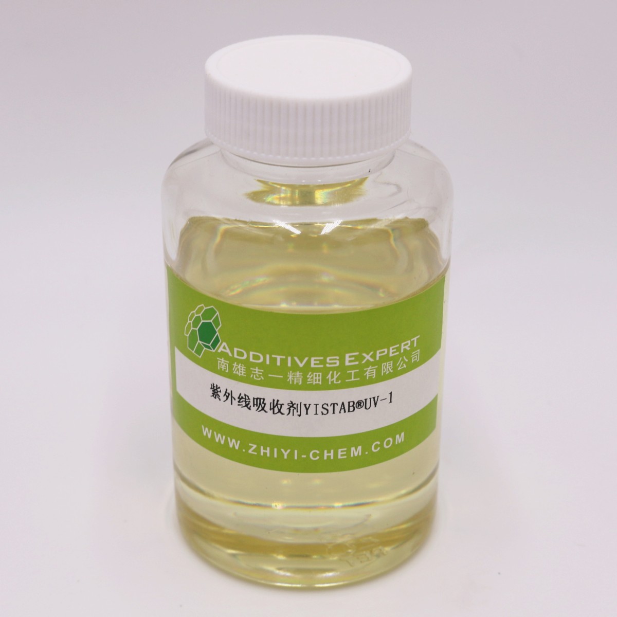 YISTAB®UV-1是一款液体甲脒类紫外线吸收剂,能有效吸收波长为240-350nm的紫外光,最大吸收峰为308nm,在300-330nm波段几乎可以完全吸收,而聚氨酯易受到这个波段的辐射而降解。YISTAB®UV-1对聚氨酯制品,如软硬发泡、弹性体、皮革、织物涂层、胶黏剂以及涂料都有优异的光稳定性能,起到抑制光氧化降解,防止产品老化,增强制品色泽稳定性的作用,延长使用寿命。与抗氧剂、光稳定剂搭配使用有显著的协同效果。 |