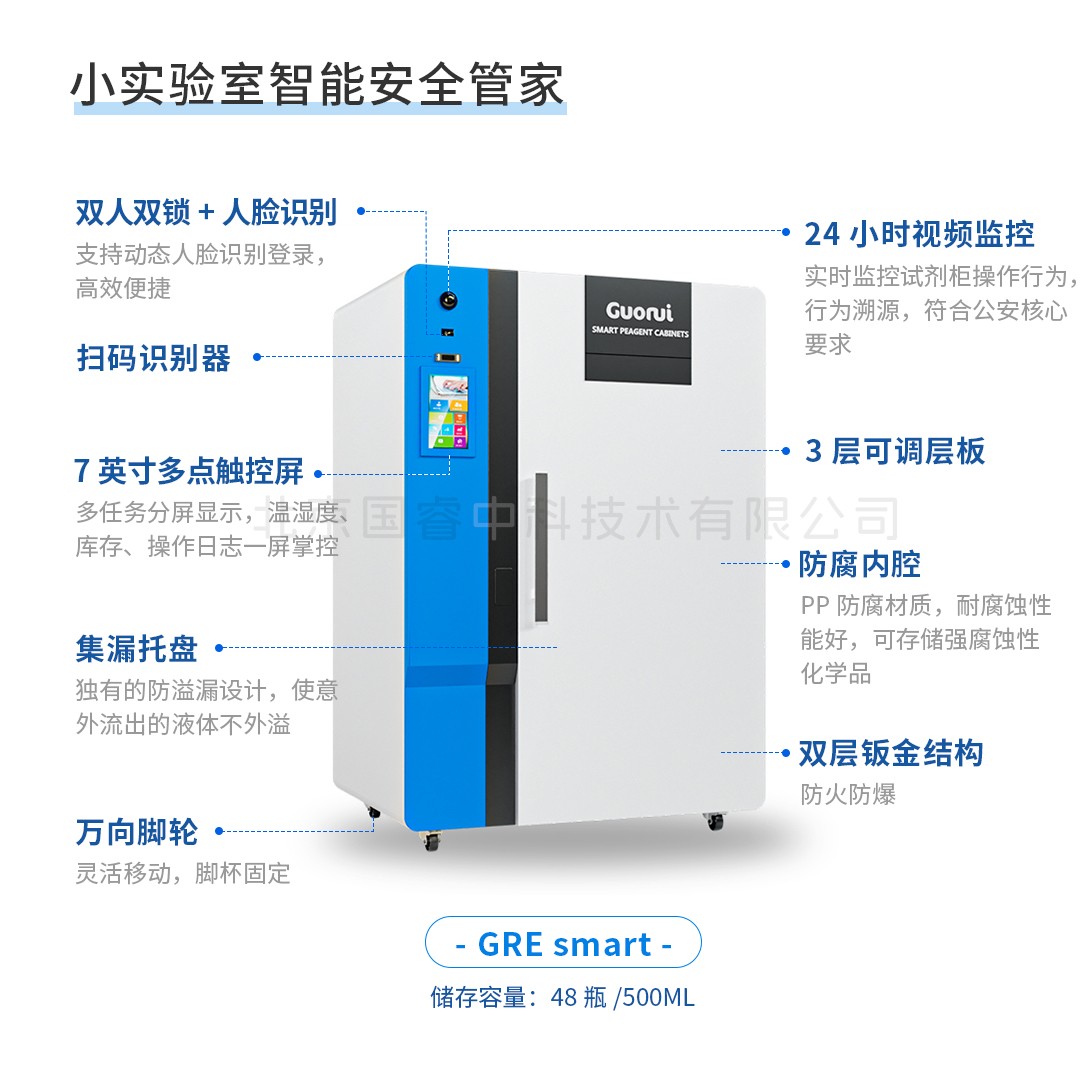 GRE smart智能信息化试剂管理柜,适用于实验室空间紧张、试剂消耗量小的用户,满足小批量试剂的存储与转运,可拓展为RFID自动识别存储柜。