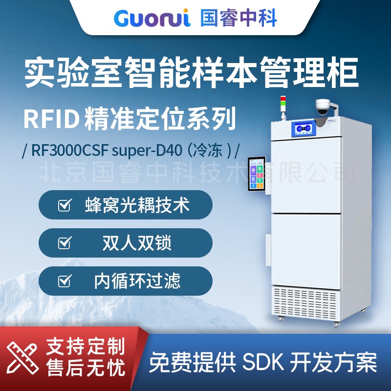 RF3000 CSF SUPER智能低温样本存储系统是专为实验室样本保管存取而设计,满足多种规格标准样品存储。产品集成自动控制、人脸识别、RFID识别、光耦感应、微动检测、温度控制、声光预警等物联技术,结合信息化管理软件,将样本的存储、使用进行智能化的管控,自动识别存取状态,自动记录台账、自动盘点、智能预警。广泛应用于医院、疾控、血站、烟草、高校、环境监测等单位的样本存储及管理。