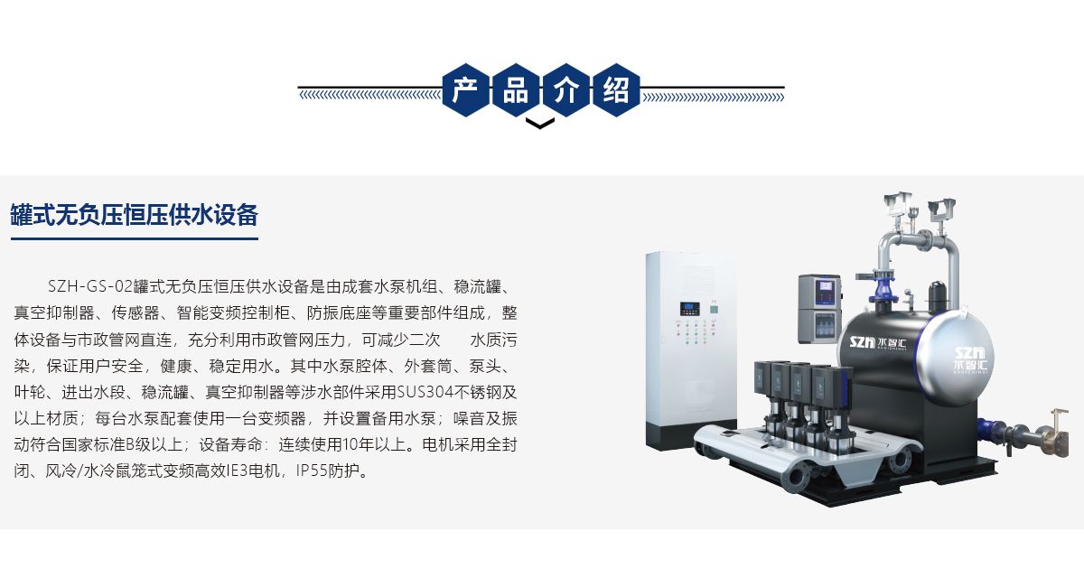 罐式无负压恒压供水设备是由成套水泵机组、稳流罐、真空抑制器、传感器、智能变频控制柜、防振底座等重要部件组成,整体设备与市政管网直连,充分利用市政管网压力,可减少二次水质污染,保证用户安全,健康、稳定用水,广泛用于老旧住宅小区改造工程、别墅、学校、医院、酒店等建筑生活用水、宾馆、写字楼、商业楼、机场等商业给水、生产制造业、食品加工厂、化工厂制药厂等工业用水。 |