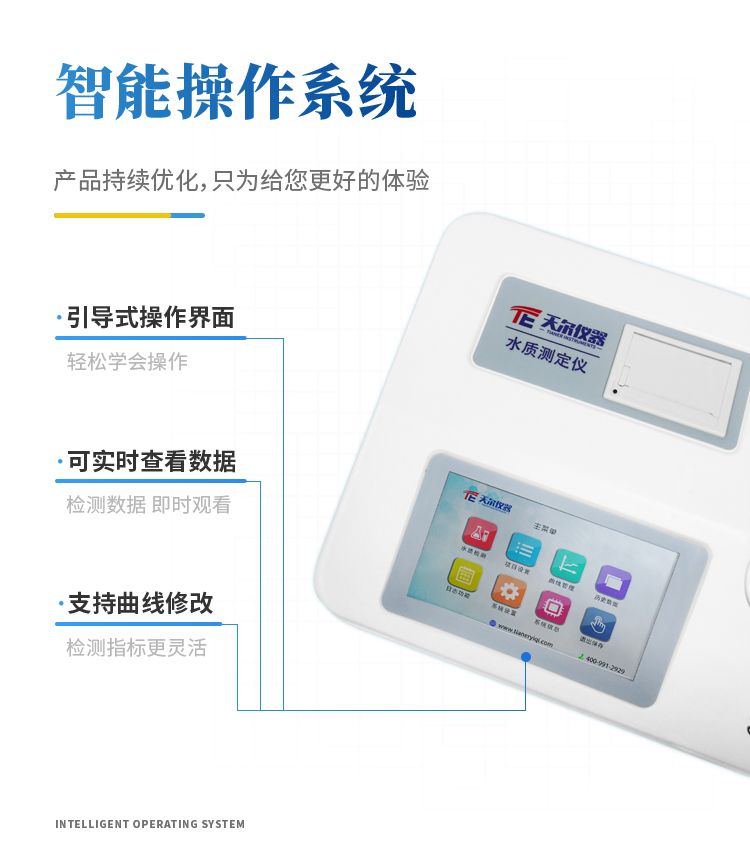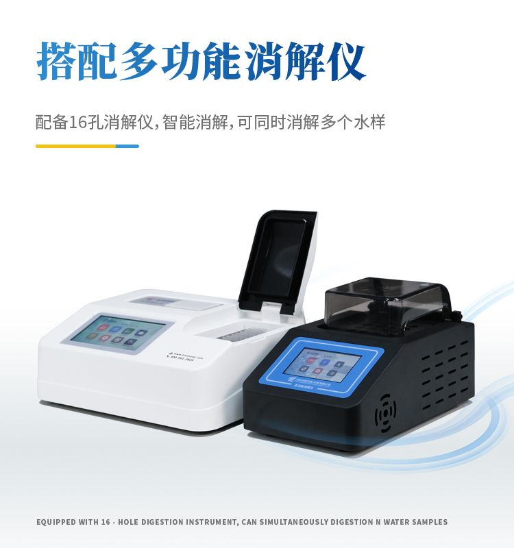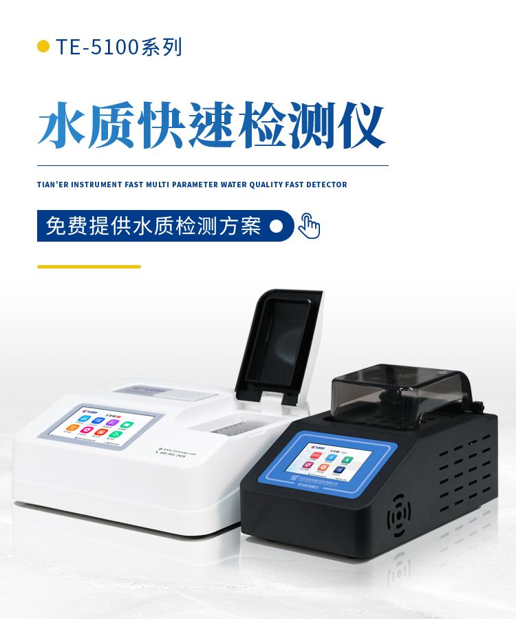 天尔TE-5100G快速测定仪是我们公司研发的一款高效实用型COD快速检测仪器,内置7寸彩色触摸屏,操作简单,搭配的5个独立检测位(4个独立的比色皿和1个360度旋转比色管),标配16孔消解仪,可预存320条曲线供客户校准、修改操作等,准确度≤±5%,重复性≤±2%。
