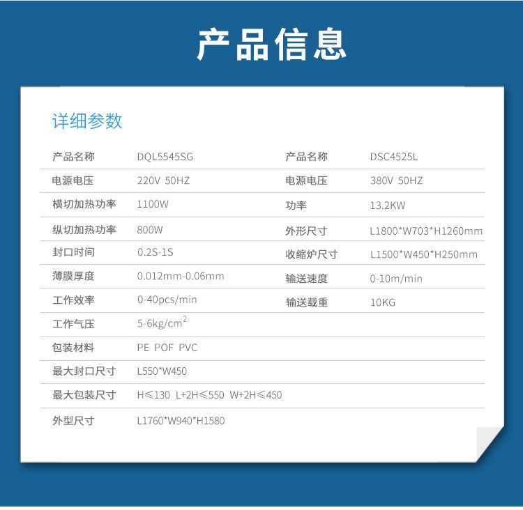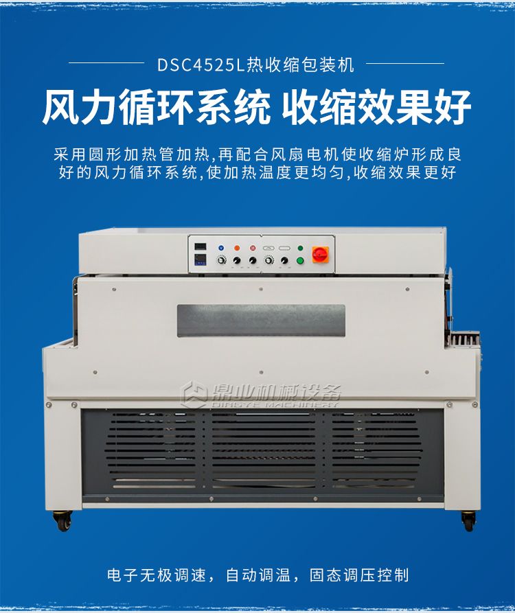 DQL5545SG封切机+DSC4525L收缩机是我公司自主研制的全自动边封机,用于大批量包装的流水作业,全自动进料、输送、入袋、封口一次性完成,工作效率高,克服了同类产品中的某些不足或功能欠缺,大胆采用全新的结构方式,突出了人性化设计。因此,操作起来更加得心应手。该机广泛应用于食品、文具、饮料、印刷、药品、地板、五金等行业的收缩包装。因其包装速度快,可满足大批量生产需求,而且包装成本低廉,故深受广大用户的欢迎。