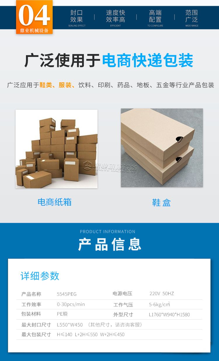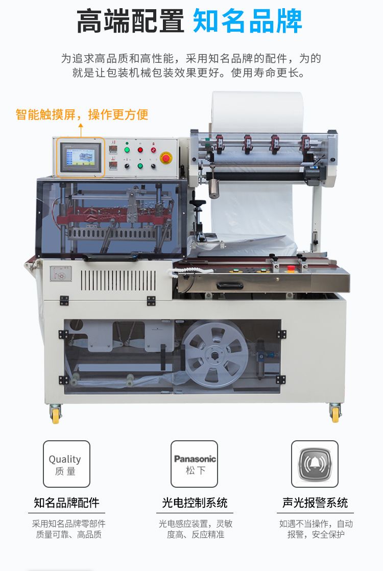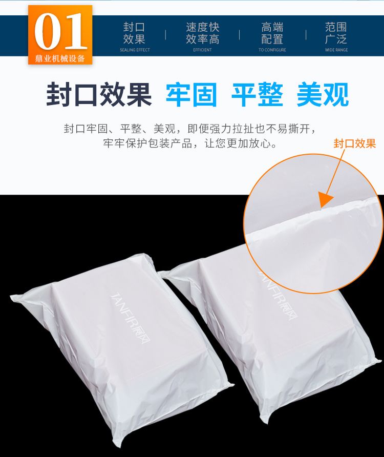 适合电商快递袋鞋服包装,封切刀带有高灵敏自动保护功能,有效防止误切包装物,误切产品无损伤,保护产品安全与人员安全。整机做到无人化作业,可与生产线直接连接使用,包装更加自动。