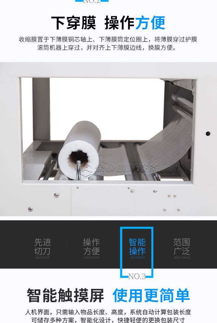 袖口式输送带式套膜机功能齐全,自动化程度高,能大幅减轻操作人员劳动强度,适合配套自动化包装流水线完成产品的自动化无人化包装,适合于单个产品包装或者是底托物品包装。