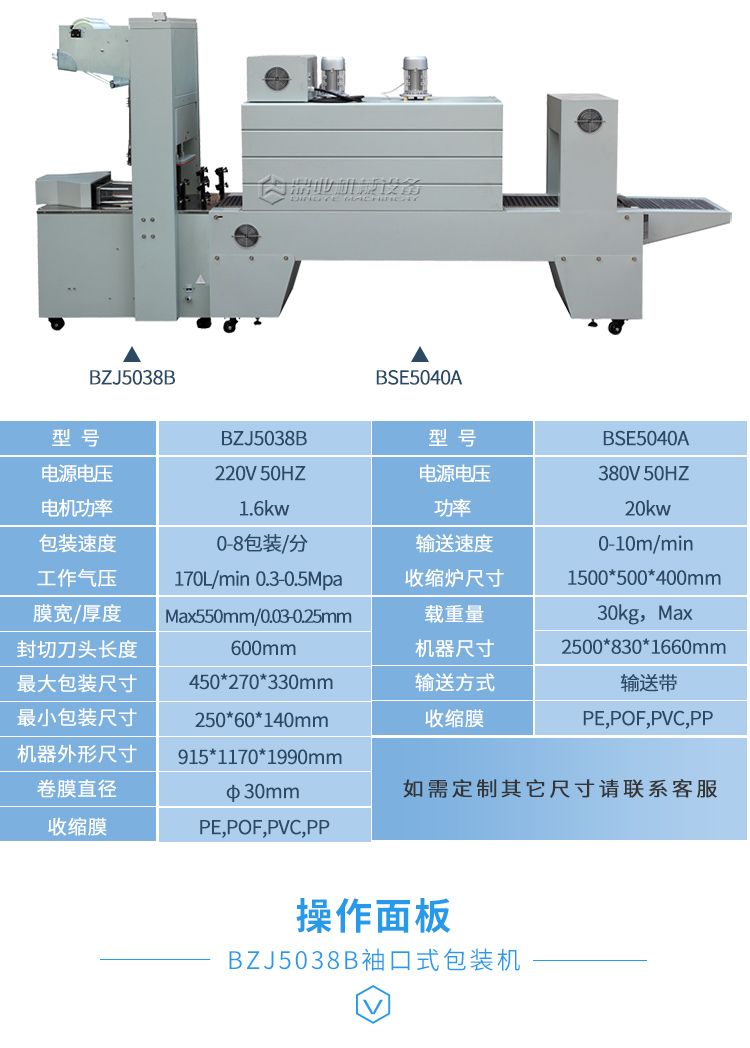 BZJ5038袖口式半自动包装机+BSE5040A PE膜热收缩包装机
