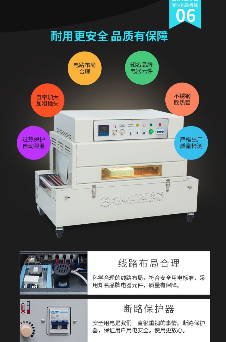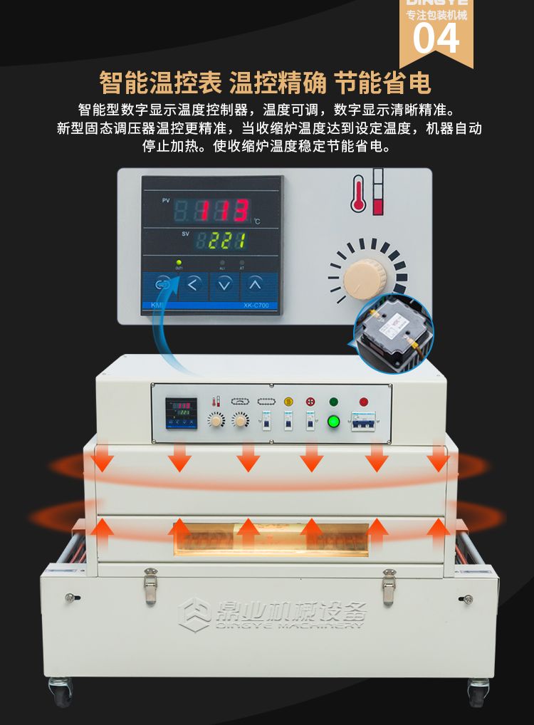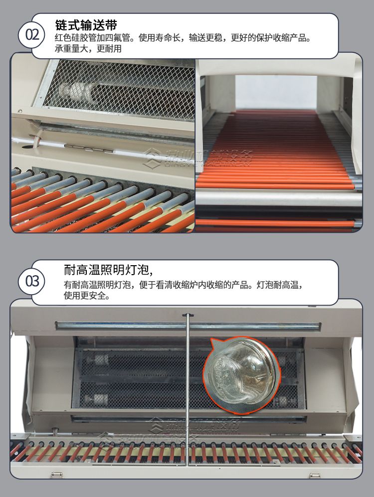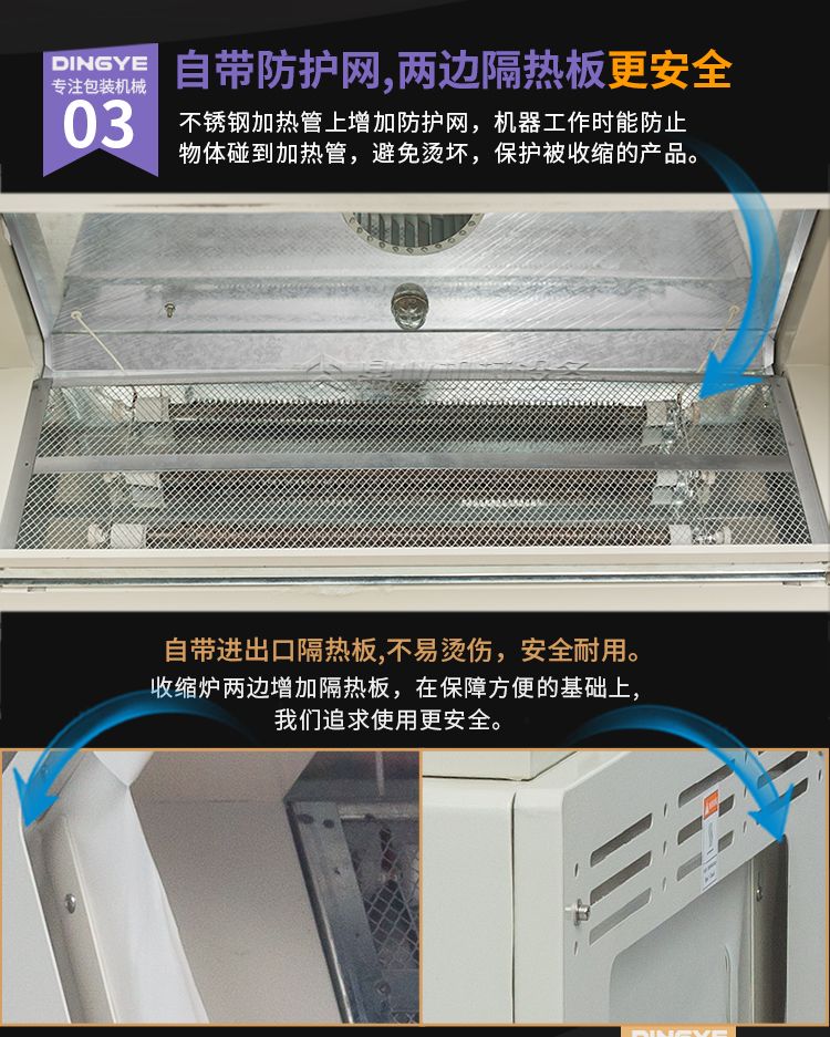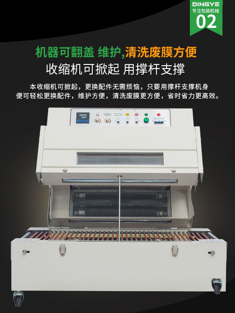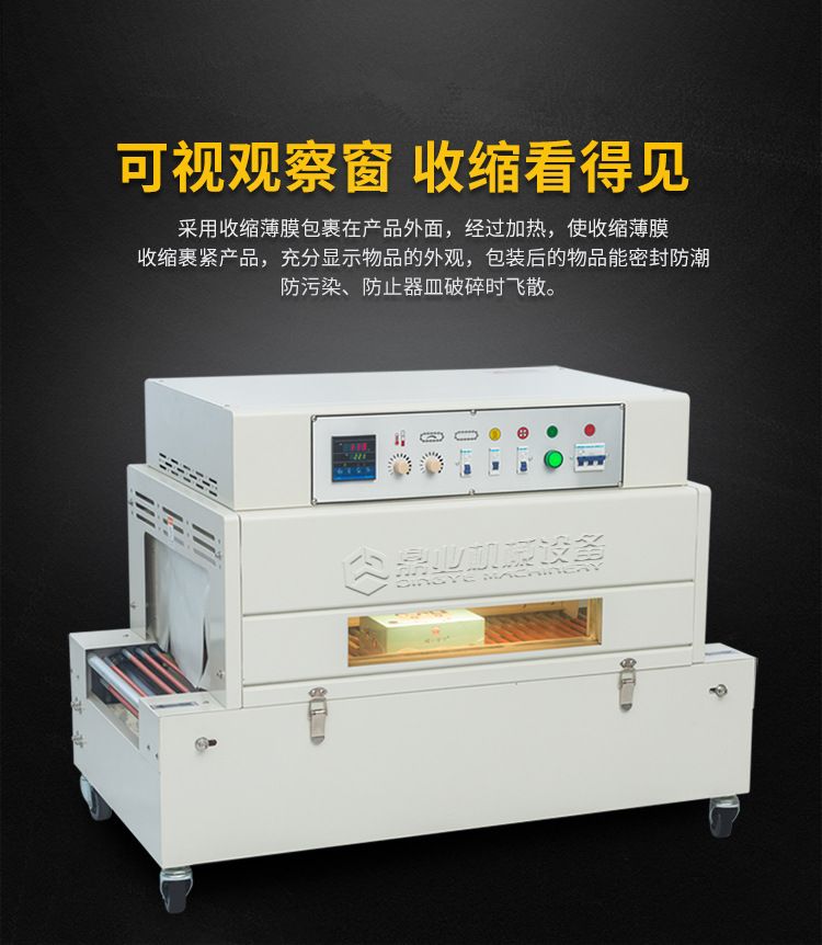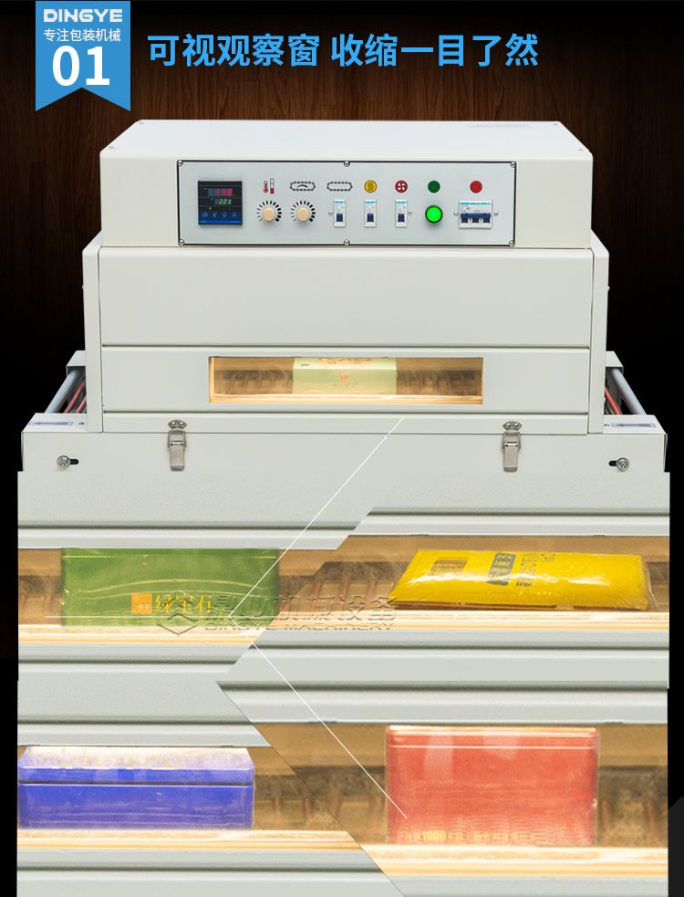 高配低台热收缩包装机采用收缩薄膜包裹在产品外面,经过加热,使收缩薄膜收缩裹紧产品,充分显示物品的外观,包装后的物品能密封防潮防污染。