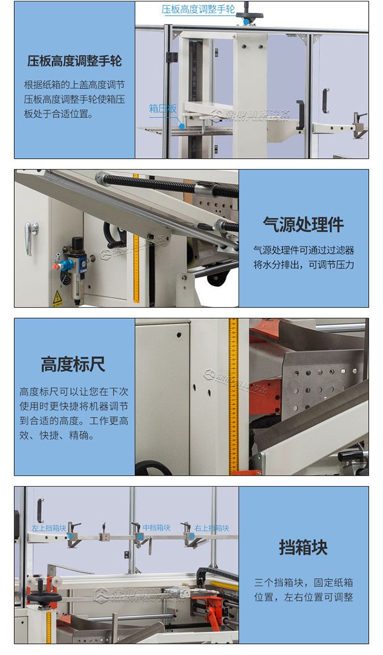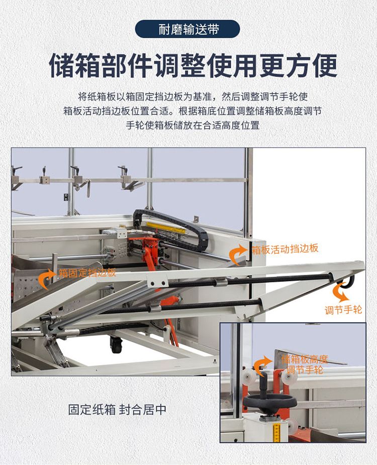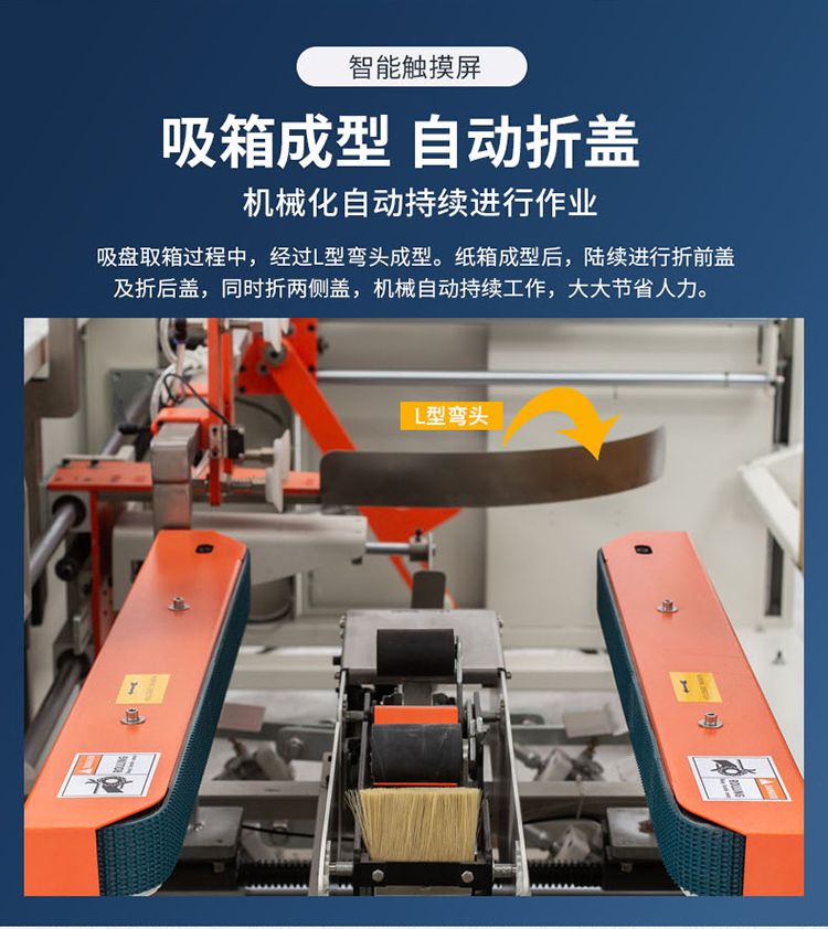 本机适合较大纸箱开箱封底,每分钟开箱8-12件。广泛应用在食品、饮料、化妆品、家用电器、书刊、纺织、百货、化工等行业。