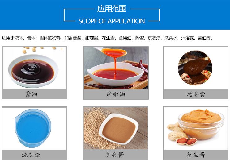 可适用于包装纯液体、辣椒酱、番茄酱、果汁饮料、汤料等产品。