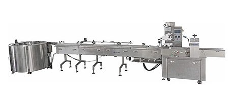 according to the peculiar consistence and fragility of the products Linked cross feeding line is controlled by the servo pillow pack wrapping machine Parameters of the line are set and adjust on the wrapper HMI panel