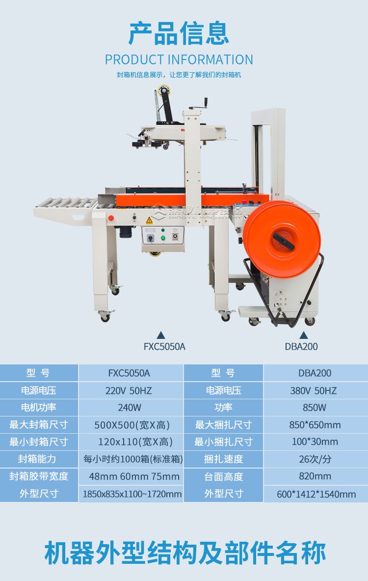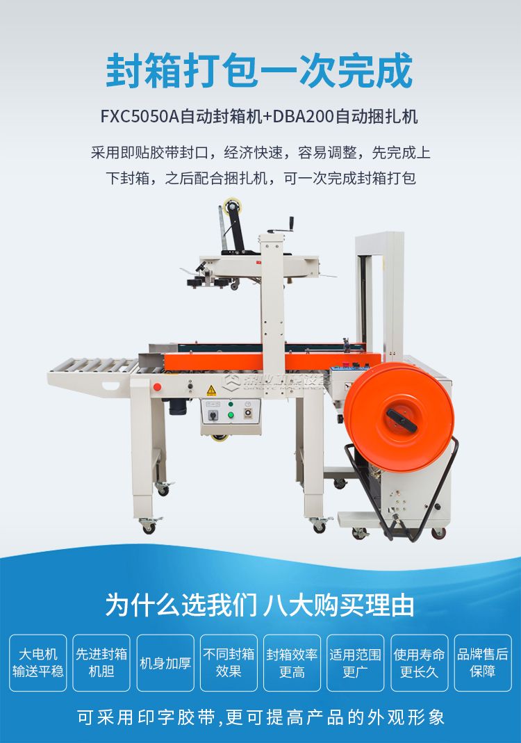 FXC5050A自动胶带封箱机+DBA200全自动捆扎机