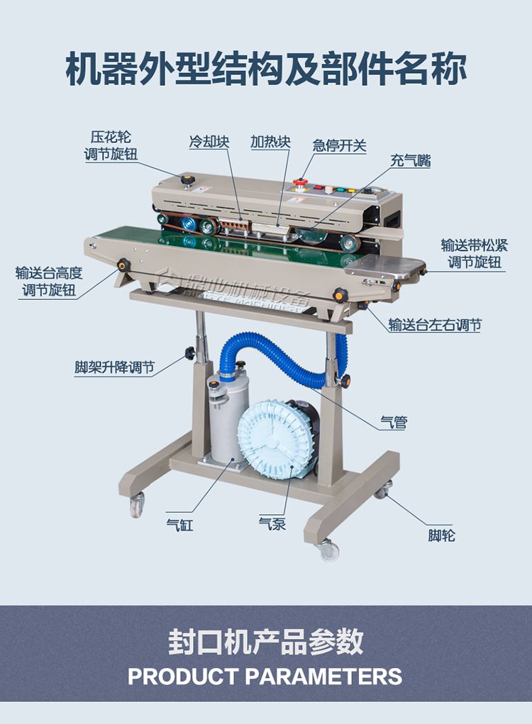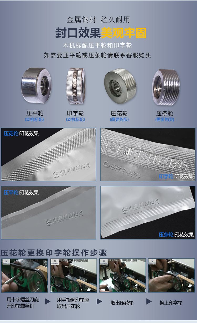 由于本机采用电子恒温控制和无级调速的传动机构,可封制各种不同材料的塑料包装袋,由于本机体积小,应用广泛,封口长度不受限制,所以可与各种包装流水线配套使用。它将是工厂、商店批量产品包装的**封口设备。 由于本机电器控制简单,合理而精制的机械传动,从而结构性能非常稳定,故障率低,且使用寿命更长。可长时间连续工作,能满足大批量生产需求。产品经过该机的封口包装后,且具外形美观、整洁、防尘、防潮、防破损、便于搬运和储存。大大降低产品的损耗,且具包装成本优势。