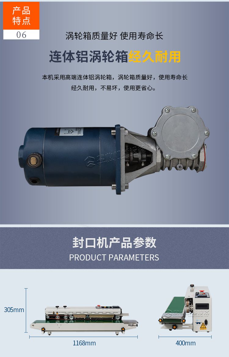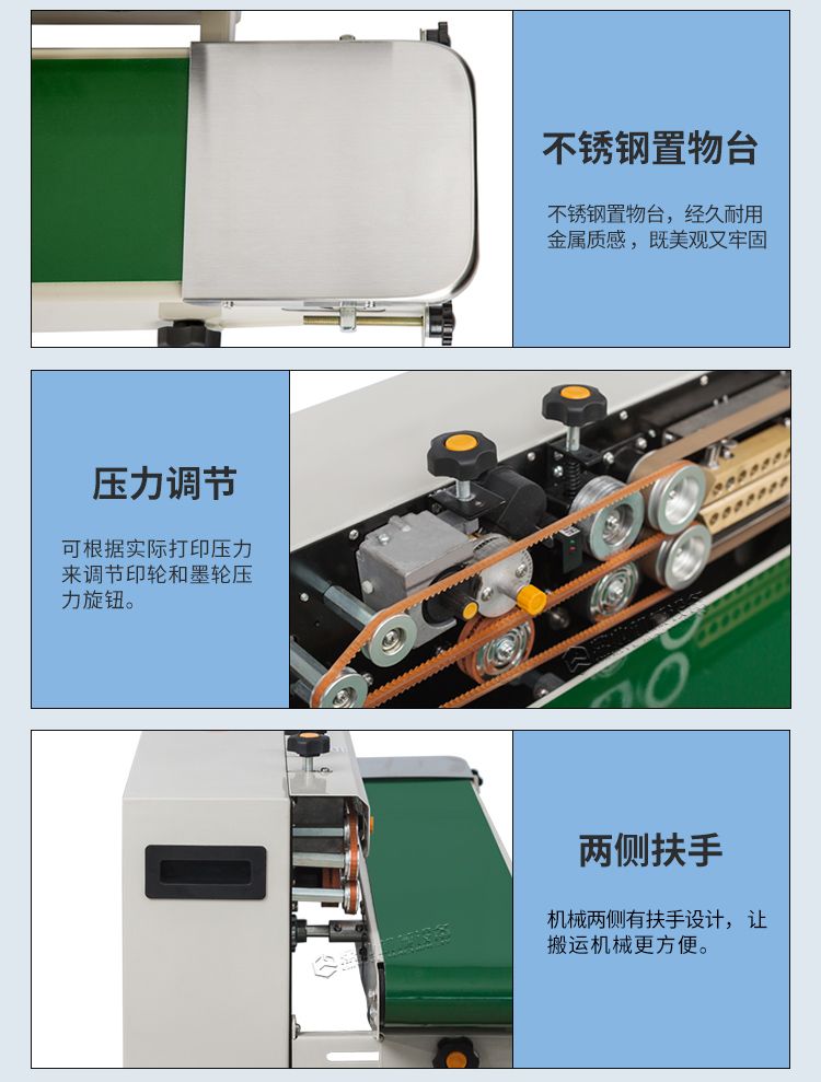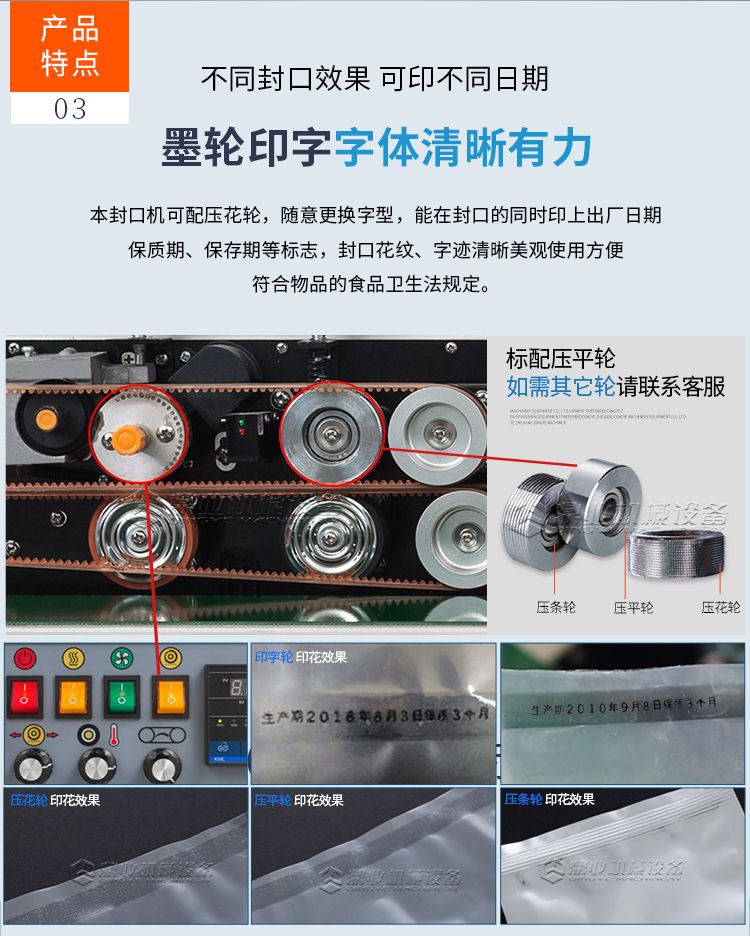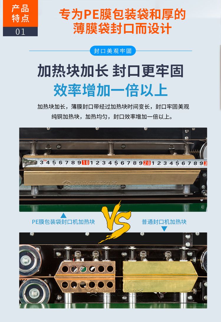 FRD-1200C PE膜包装袋墨轮连续式封口机专为PE膜包装袋和厚的薄膜袋封口而设计的一款新机,具有安全可靠操作简便,热合快捷,封口美观,牢固等优点。
