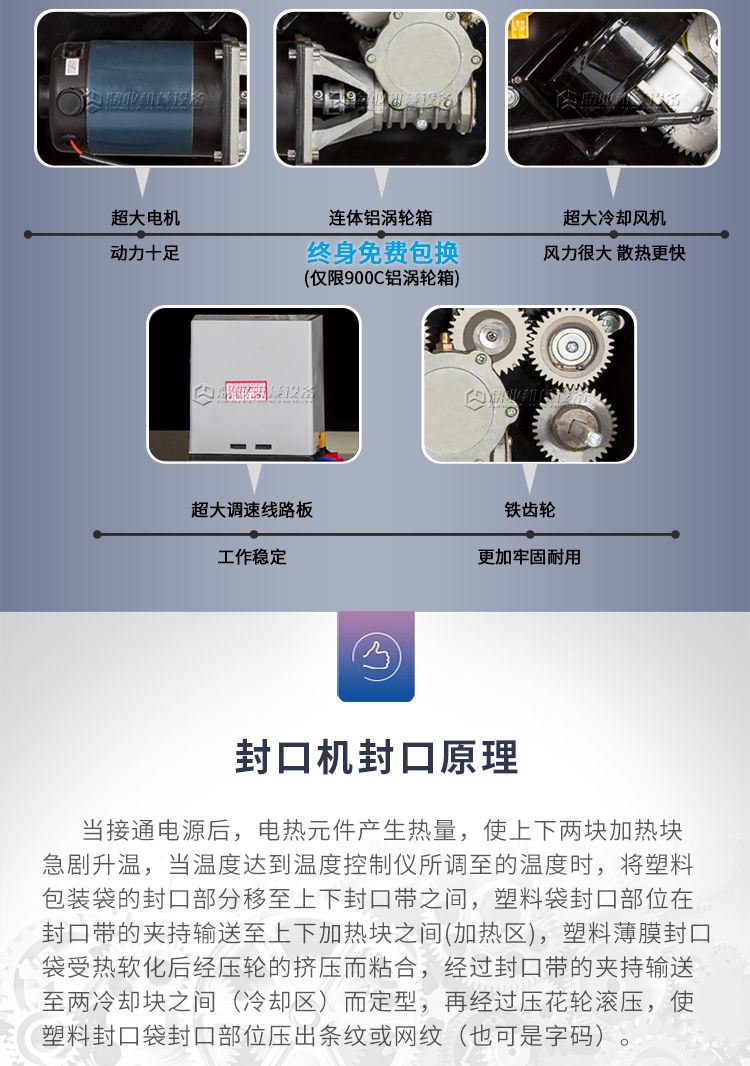 手提袋封口机适用于塑料薄膜的封口、制袋,可广泛应用在食品、医药、化工、日用、种子等行业。 FR-900L手提袋封口机采用电子恒温控制和无极调速的传动机构,可封制各种不同材料的塑料包装袋,由于本机器体积小,应用广泛,封口长度不受限制,所以可与各种包装流水线配套使用。它将是工厂,商店批量产品包装的封口设备。 由于本机电气控制简单,合理而精制的机械传动,从而结构性能非常稳定,故障率低,且使用寿命更长。可长时间连续工作,能满足大批量生产需求。产品经过该机的封口包装后,且具外形美观、整洁、防尘、防潮、防破损、便于搬运和储存。大大降低产品的损耗,且具包装成本优势。