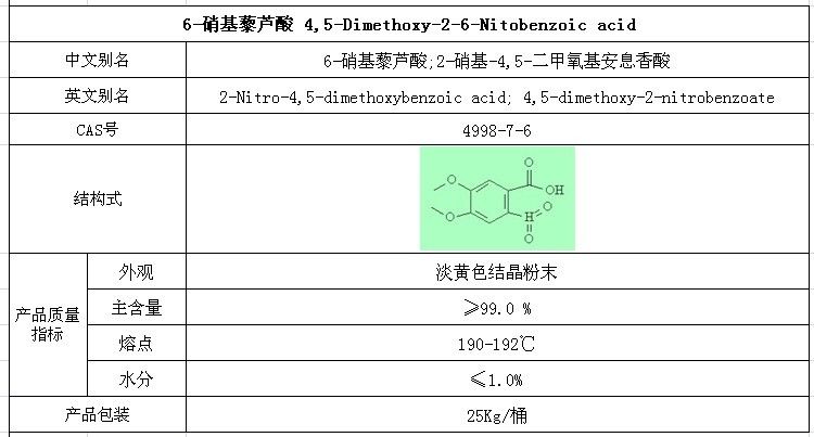 我对您的6-硝基藜芦酸产品感兴趣,请发具体的信息及报价,谢谢!