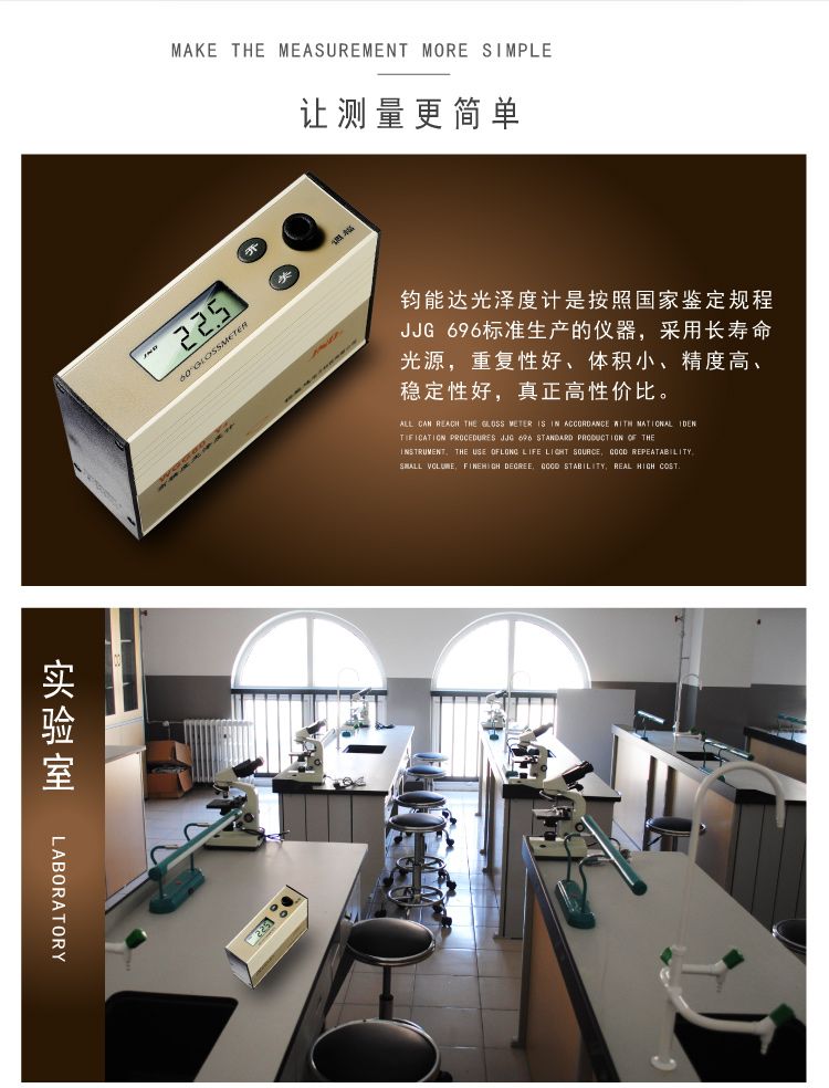 WGG60-ES4光泽度计是参照标准ISO 2813和GB/T9754设计制造的光泽度测量仪器.技术参数同时符合ASTM D2457、ASTM D523及GB/T13891 GB/T7706、GB/T8807标准中的规定。性能指标达到标准JJG 696《镜像光泽度计和光泽度板》计量检定规程中二级工作机要求。