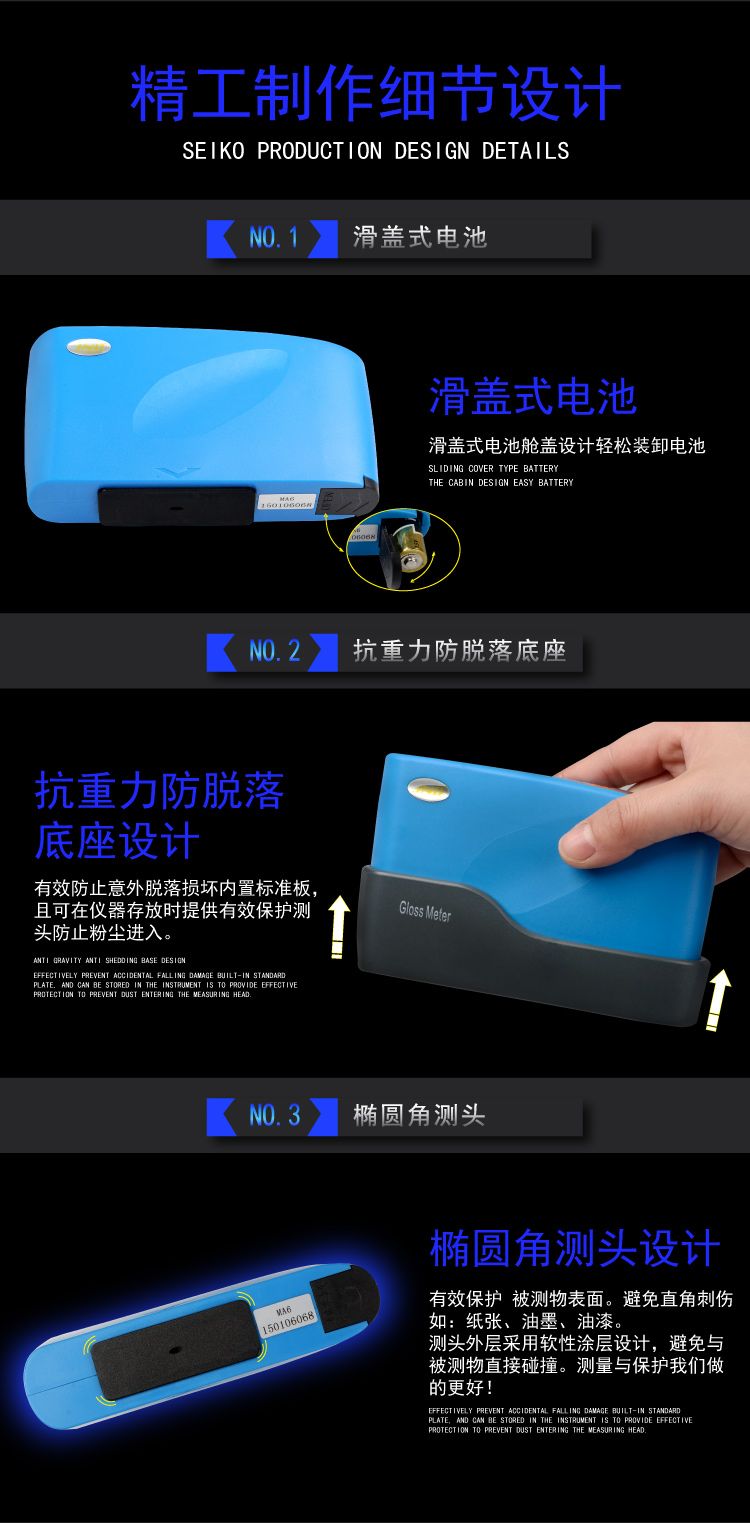 XA6小孔径便携式光泽度计是参照标准ISO 2813和GB/T13891 GB9754 GB7706 GB8807设计制造的便携式光泽度测量仪器。其技术参数同时符合ASTM D2457、ASTM D523标准中的规定,为适应小平面光泽度测量,本系列采用微小测量光斑和窗口,性能指标达到标准JJG 696《镜像光泽度计和光泽度板》计量检定规程中二级工作机要求。 |