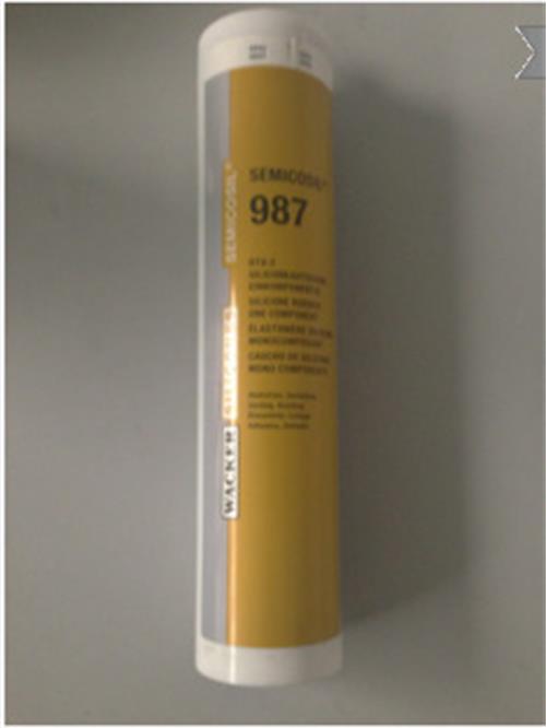 瓦克987密封胶水 SEMICOSIL987 GR 是一款半透明/、触变性(剪切变稀)、低应力、单组份加成型硅橡胶。 1.粘度:300000 Mpa.s 2.开放时间:常温(25℃)放置很难固化 3.固化时间:150°C-10min 4.硬度:邵A-50