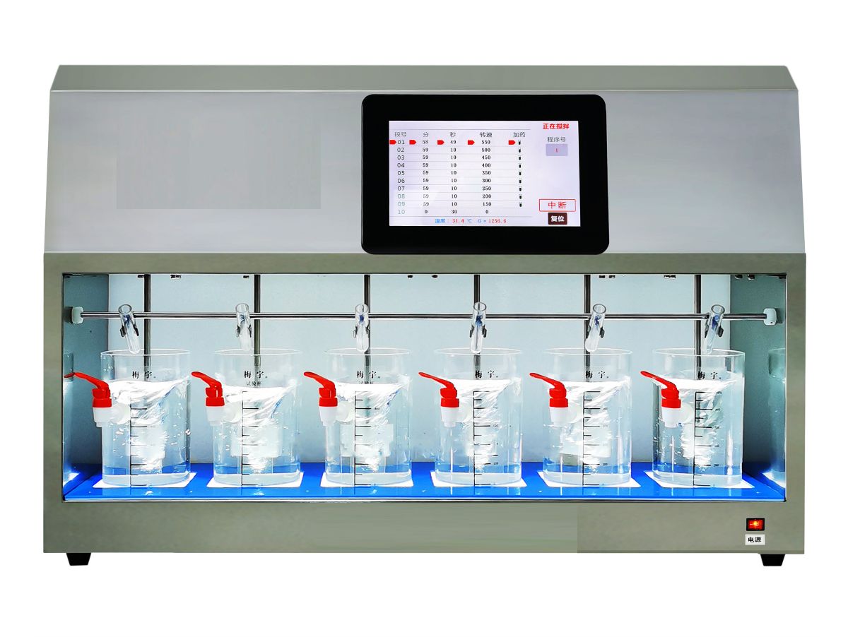 MY6000-6T六联电动搅拌器是一种水处理液体、试验介质强迫对流并均匀混合的仪器。同时配备圆形或方形搅拌试验杯,是混凝沉淀烧杯试验的主要设备。 1、可同时搅拌几个搅拌试验杯的多联搅拌器; 2、底部应有观察絮体的照明装置,且照明装置不应引起水样温度升高; 3、应有加注药剂的小试管和放置试管的支架,且能同时对搅拌杯投加药剂; 4、搅拌生产的速度梯度G值应在1000~20s范围内可调; 5、搅拌桨宜采用无级调速,否则其转速不应少于5档。转速应能控制,有显示,其精度士2%。当一个或几个桨叶停止或启动搅拌时,不应影响其他桨叶的转速; 6、搅拌时间应能控制,精度士1%,有显示; 7、宜采用单平直式叶桨; 8、所有桨叶的材质应相应相同且均匀,形状和尺寸上应相同,精度士1mm,径向摆动应不大于2mm,应具有化学稳定性、耐腐蚀性,对试验不产生影响; 9、各桨叶轴中心线应铅垂,允许偏差士2mm; 10、桨叶在各个搅拌杯中的几何位置应相同(桨叶上缘距水面、边缘距杯壁、下缘距杯底的距离相同),允许偏差士2mm; 11、搅拌过程中桨叶应全部淹入水体中; 12、桨叶应能自由上升和降下; 13、搅拌时整套装置应保持平稳,严禁桨叶在转动时扭弯。 1、搅拌功率:180W 2、包装尺寸:90*30*50厘米/cm 3、转速范围:10 ~ 1200转/分 ± 0.01% 4、速度梯度G 值:10 ~ 1000秒-1 5、时间范围: 0 ~ 99 分59秒 x 10 ± 0.01秒 6、测温范围: 0 ~ 50℃ ± 1℃ 7、可设程序数量:30种; 每种自动无级变速10次 8、电 压: 0 ~ 220V ± 5% |