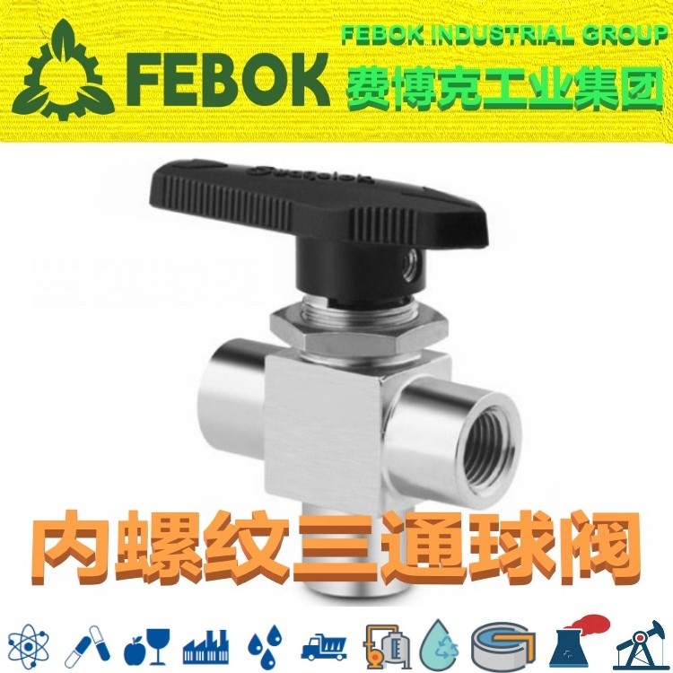 ①三通内螺纹球阀有两座和四座密封结构,阀芯孔道有L型和T型两种结构形式,采用控制阀芯旋转角度,改变阀芯孔道与管道口的连接状态,可实现对三条支管不同的组合控制;