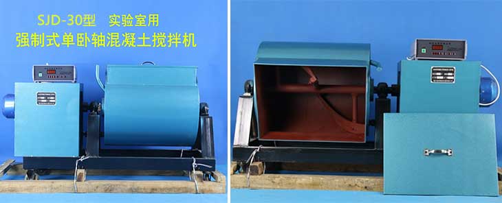 型号:SJD-30 最大进料容量:48升 最大出料容量:33升 搅拌均匀时间:≤45分 搅拌轴转速:45转/分 电动机功率:1.5千瓦 工作电压:380V 【结构工作原理】 SJD-30强制式单卧轴搅拌机是由机架、搅拌装置、传动系统、限位装置及电器控制系统所组成。 机架是整个设备的支撑部分,由槽钢焊接而成,搅拌装置由搅拌筒,搅拌轴、搅拌铲片所组成,搅拌铲固定在搅拌臂上,并且与搅拌轴组成一体形成两组螺旋方向相反,便导程及螺旋升角相同的螺旋带壮搅拌铲,搅拌铲与搅拌筒内壁的间隙可微量调整。 传动机构是减速电机和联轴器组成,筒体限位装置由锁定销及定位孔所组成,电器控制系统具有起动、点动、停止、定时的功能。 工作原理:减速电机通过连轴器使搅拌轴沿一个方向旋转,搅拌轴上的正反两且铲片搅拌物料,由于螺旋升角的作用,铲片工作时使筒内的物料由一侧推向另一侧,又由另一侧推回原处的循环动作,使物料得到充分的搅拌,从而获得较理想的搅拌效果。 卸料时须停机,开启锁定,使筒体旋转一定角度,再限位,按点动按钮,实现拌和物排出筒外。 【安装】 机器白条后应检查减速电机,料筒、轴承座等在运输中有无损坏,紧固件有无松动。若有松动应拧紧,支撑地基为平整的混凝土地面,搅拌机手动时应用绳索系在机架上,不可套系在搅拌轴上。搅拌机底座下面安装有脚轮,可任意移动。 【操作规程】 1、启动前首先检查旋转部分与料筒是否有刮碰现象,如有刮碰,应及时调整。 2、 减速箱应注入机油后方能使用,卸料蜗轮及滑动轴承处也应注入机油。 3、清理料筒内杂料,将筒体限位装置锁紧,然后启动机器,如在启动后发现运转方向不符合要求时,应及时切断电源,将导线的任意两根相线互换位置,再重新启动。 4、 将混凝土拌合物装入料筒内,合上筒盖,根据搅拌时间调整时间继电器的定时(必须在断电情况下调整)。 5、按动启动按钮,主轴便带动搅拌铲运转,达到设定时间后自动停车。 6、卸料时先停机,然后将料体位限制受柄松开,再旋转手轮,由蜗轮带动料筒旋转到便于出料的位置,停止转动,然后启动机器使主轴运转方可排出物料,直至将料排干净停止主轴运转,旋转手轮使物料筒复位。 7、清洗料筒,将水到入料筒内使主轴运转将料筒内残余物料清洗干净或用砂子清洗也可。 |